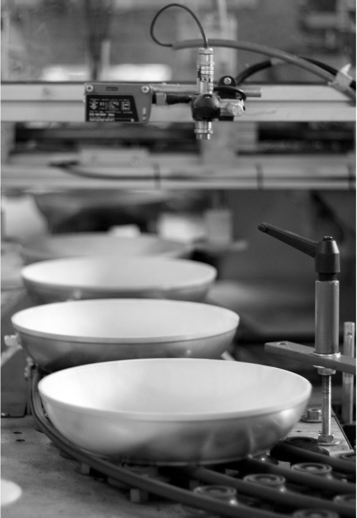 Precision engineering at work – raw pans move through the production line, where automated machinery shapes and finishes them with the craftsmanship that defines Essteele.