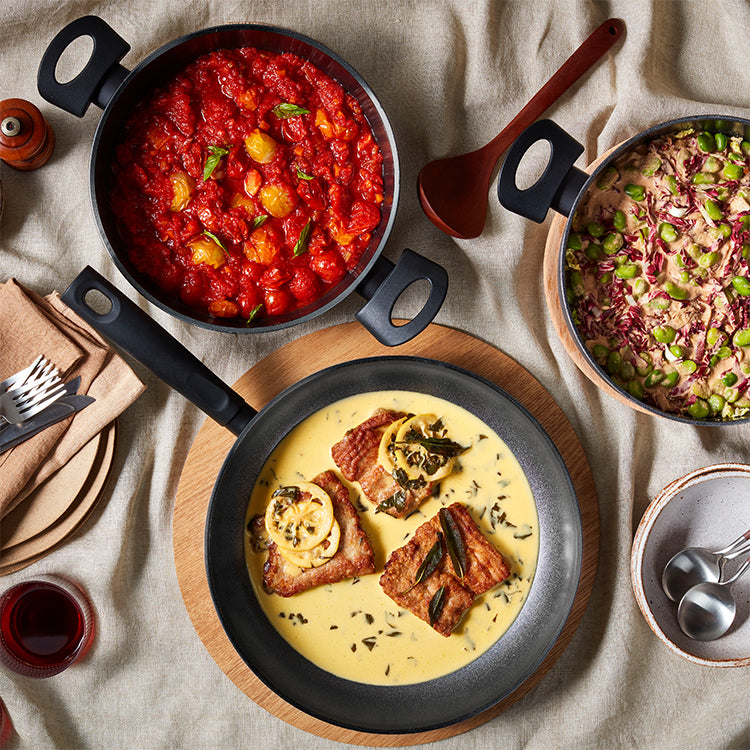 Experience culinary luxury with Essteele’s Per Benessere collection. Crafted in Italy, our 3-layer ceramic nonstick coating reinforced with