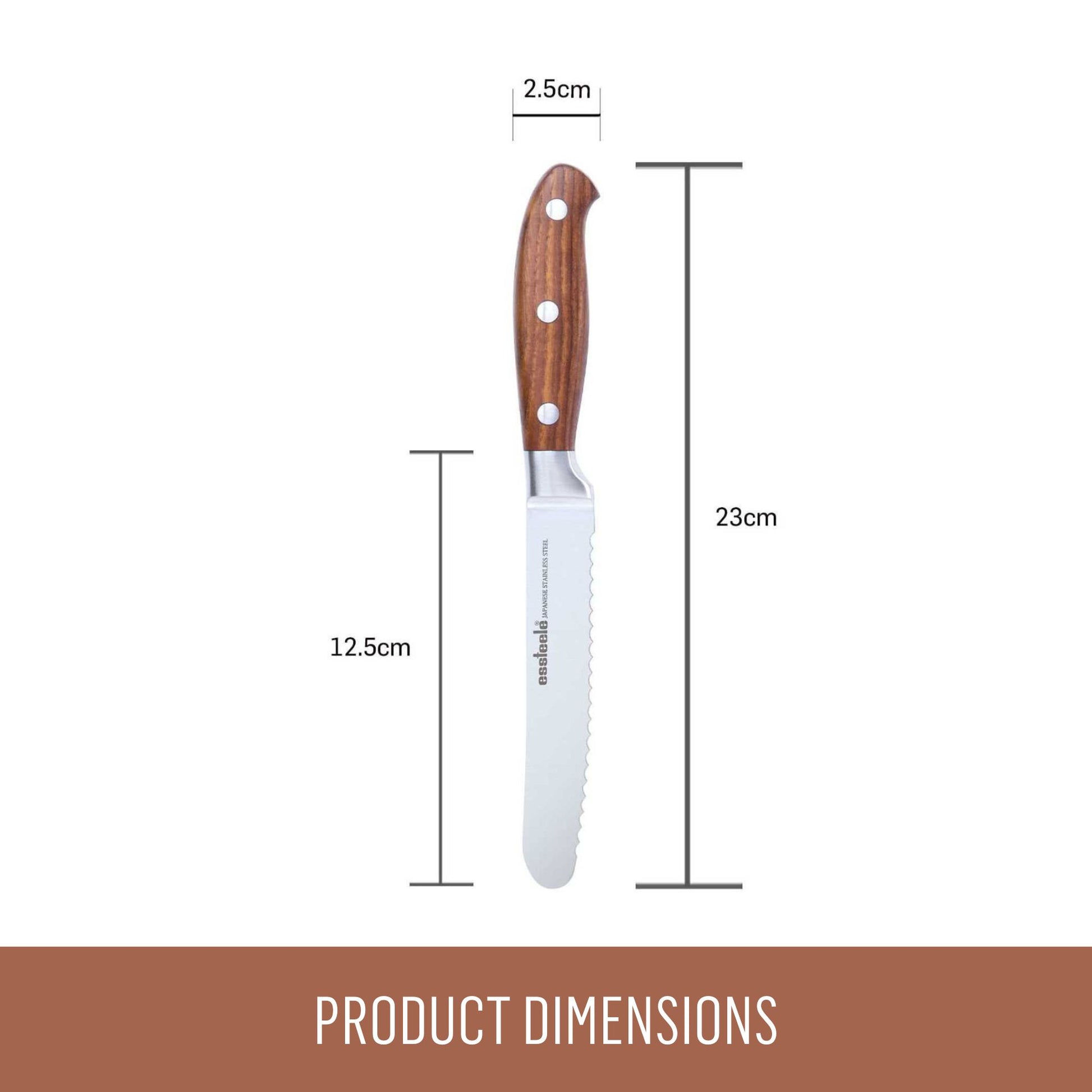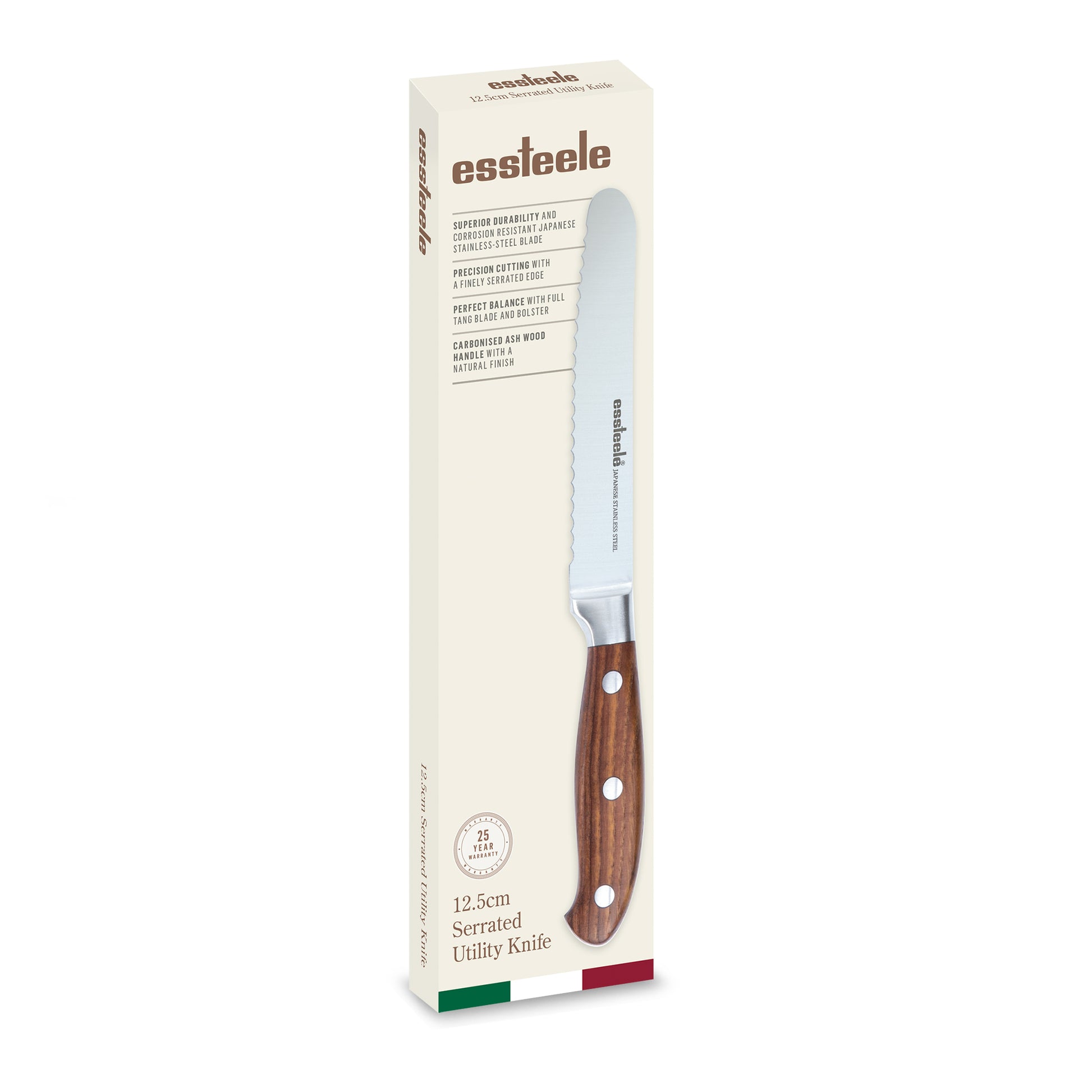Elevate your kitchen prowess with the Essteele 12.5cm Serrated Utility Knife. Forged from superior Japanese steel, this knife is your quintessential culinary partner.