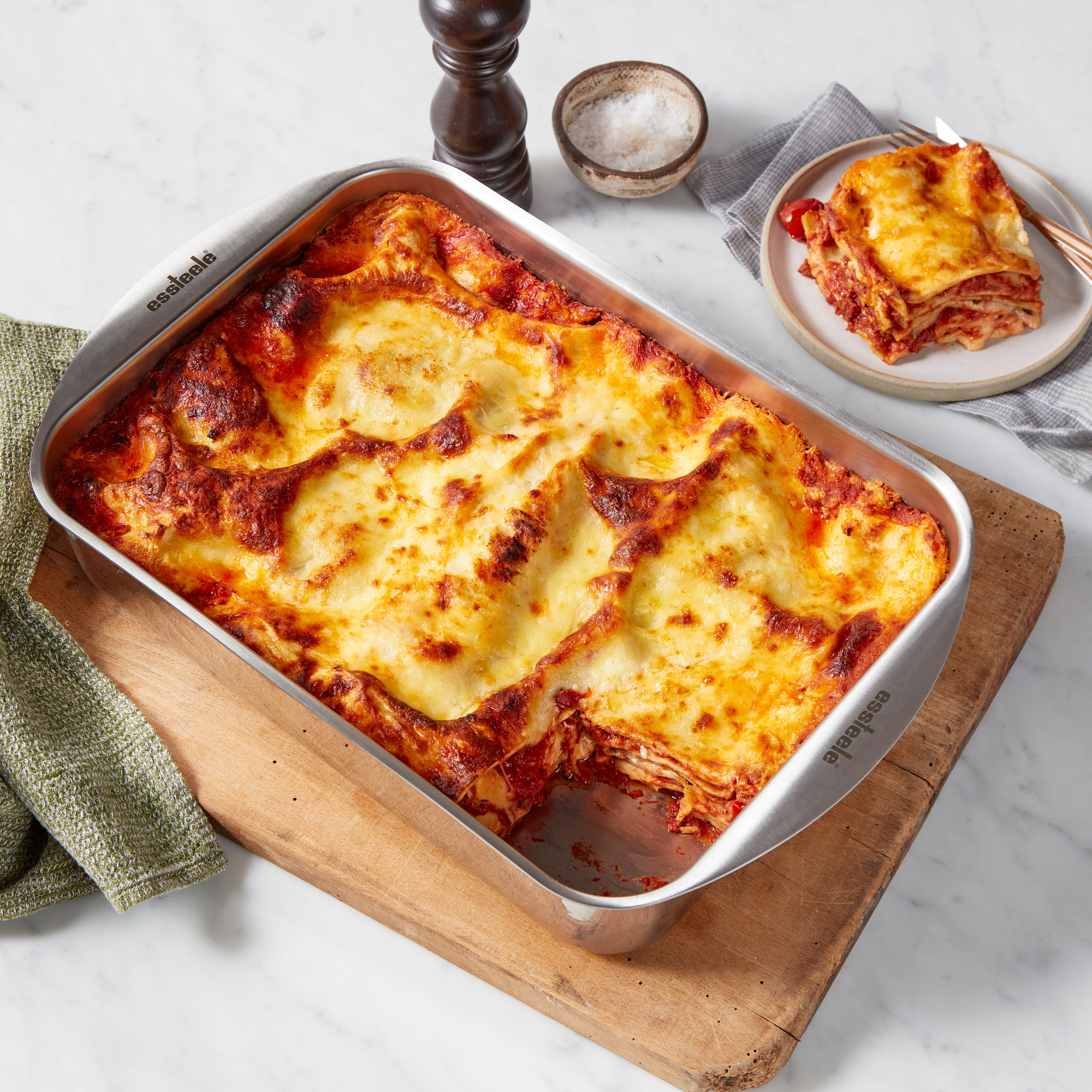 Discover culinary excellence with the Essteele Clad Ovenware Rectangular Roasting Pan. Measuring 33cm x 23cm x 5.5cm, it boasts Tri-ply Clad construction with heavy-duty stainless steel enveloping an aluminium core, for even heat distribution - withstanding oven temperatures up to 315°C/600F.