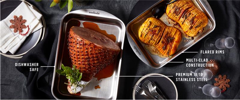 Its elegant stainless steel design, flared edges, and generous size make it perfect for passionate roasting enthusiasts. Its ample dimensions provide you with the space you need to roast large cuts of meat, vegetables, or even whole poultry. This pan is both a kitchen essential and a masterpiece, reflecting your love for cooking.