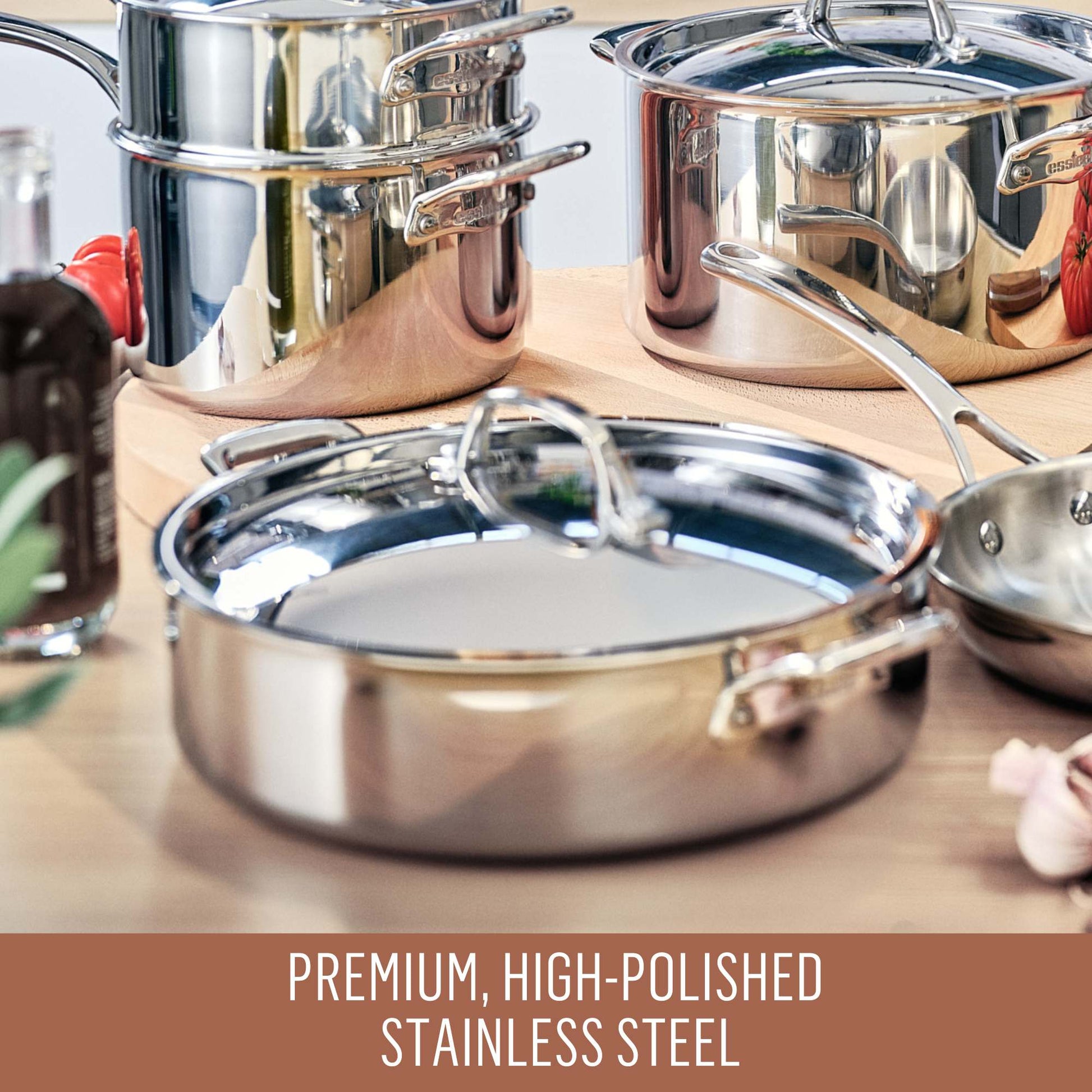 - PREMIUM, HIGH-POLISHED STAINLESS STEEL EXTERIOR for an elegant look and pan that truly shines