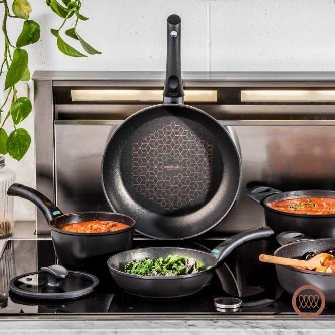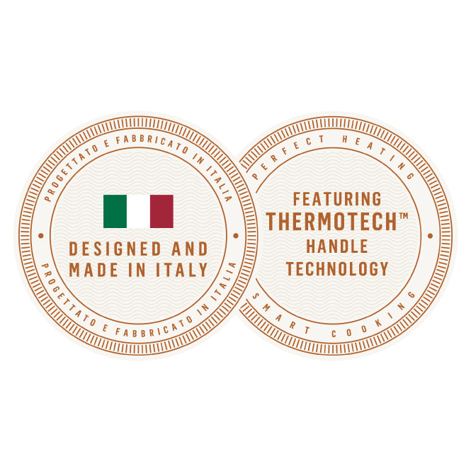 Essteele Per Salute combines convenience and solution-driven features into beautiful, Italian made cookware. The Per Salute nonstick coating is reinforced with real diamond for exceptional heat conductivity and, along with the Durashield™ interior, will bring some sparkle to your kitchen. Featuring a robust 7-layer construction this cookware makes preparing healthy gourmet meals easier than ever.