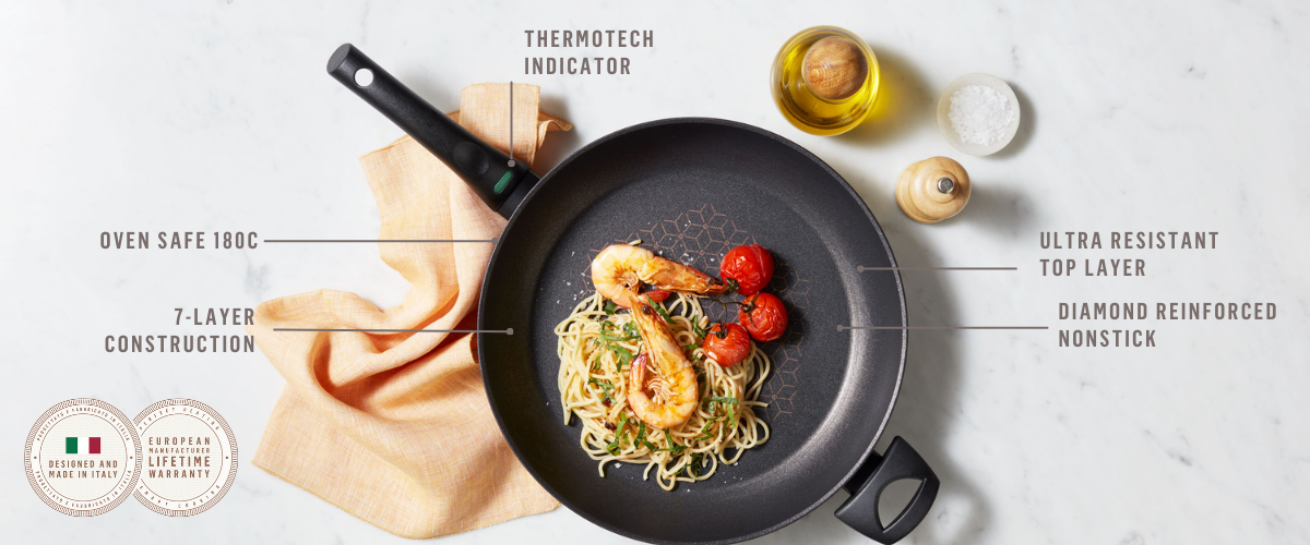 CONVENIENT - Oven safe to 180°C for stovetop to oven cooking
