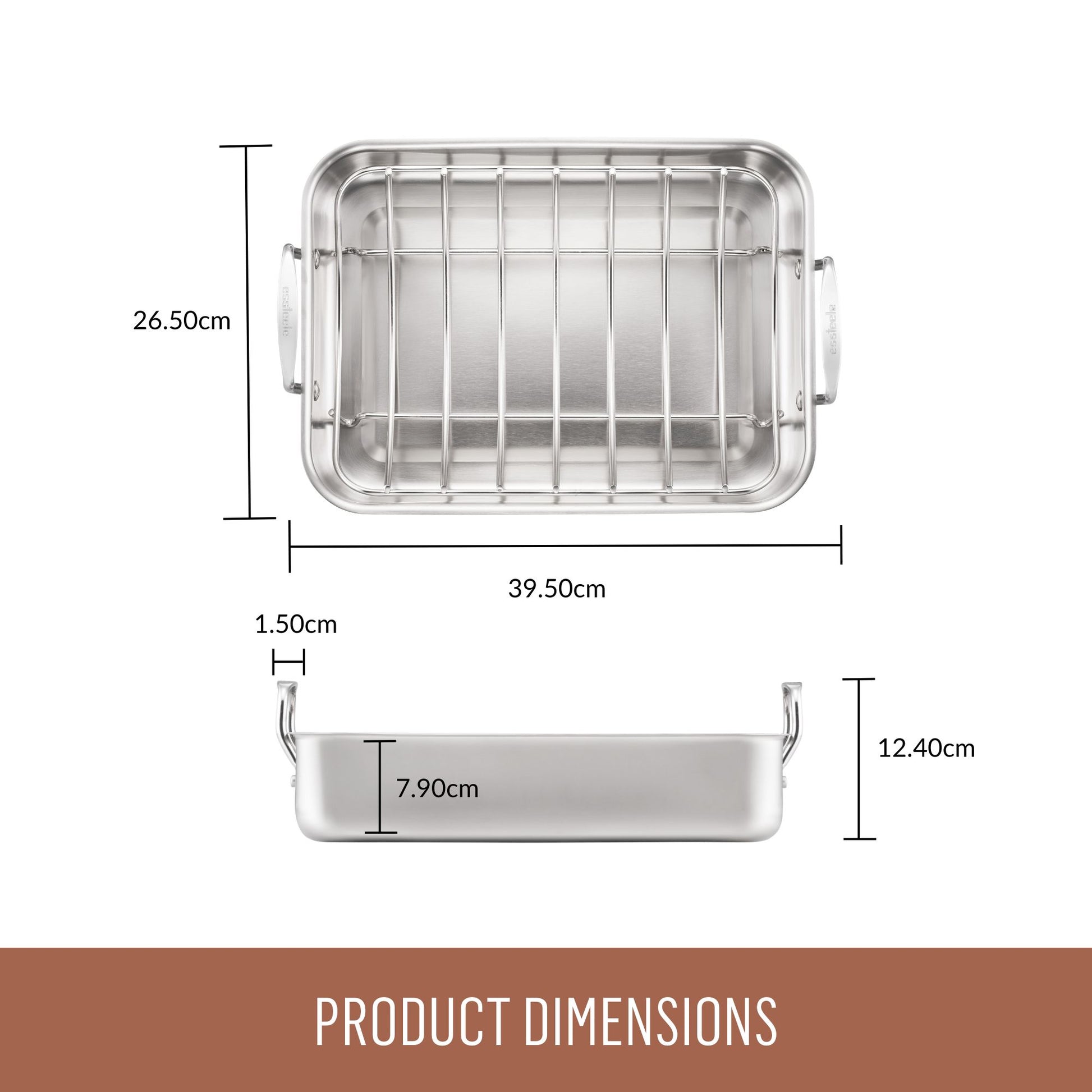 Essteele Stainless Steel Roaster with Rack – 35cm x 25cm x 8cm